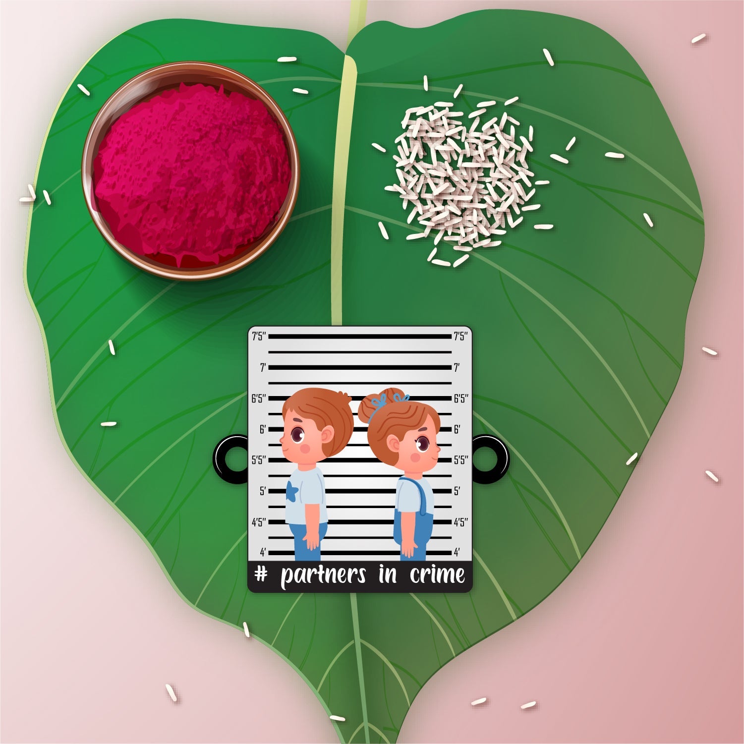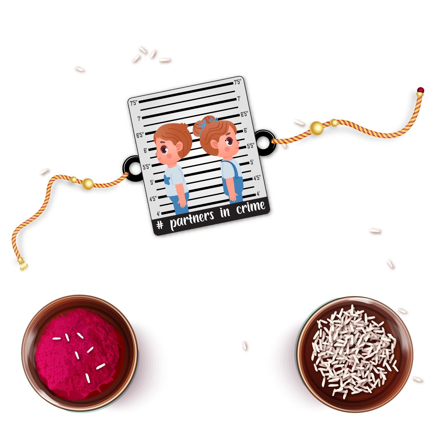 Indianvibez Partners in Crime Rakhi Wooden Rakhi for brother with Rudraksha Thread - Kids Rakhi
