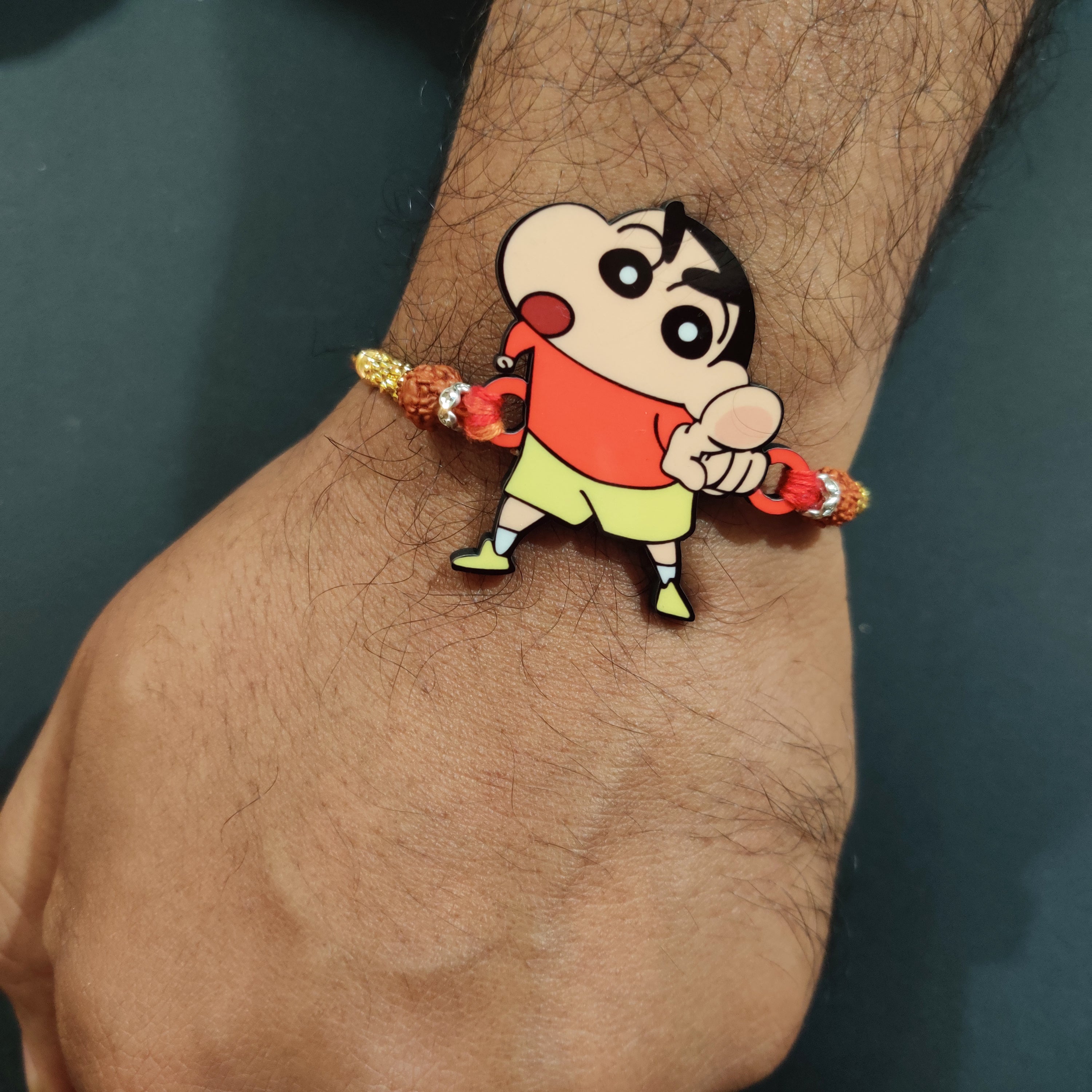 Indianvibez Shinchan Wooden Rakhi with Rudraksha, Funny Rakhi for Brother, Shop India - Kids Rakhi
