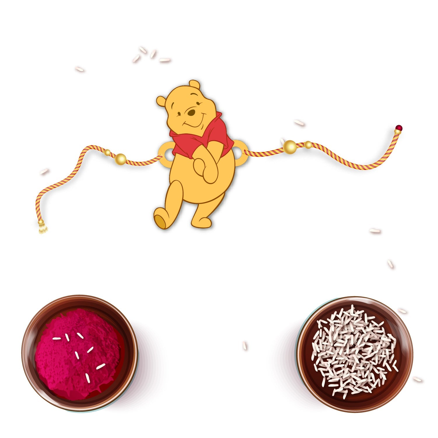 Indianvibez Winnie Pooh Wooden Rakhi with Rudraksha, Cute Rakhi for Brother, Shop India - Kids Rakhi