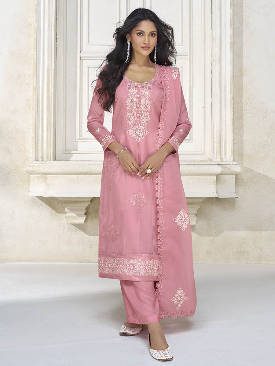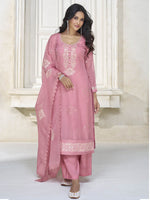 Myra Dusty Pink Organza Silk Embroidered Pant Style Suit - Distacart
