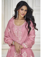 Myra Dusty Pink Organza Silk Embroidered Pant Style Suit