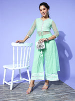 Yufta Sea Green Printed Top with Trousers