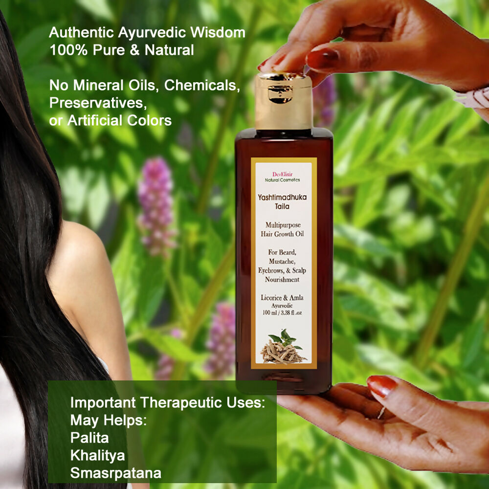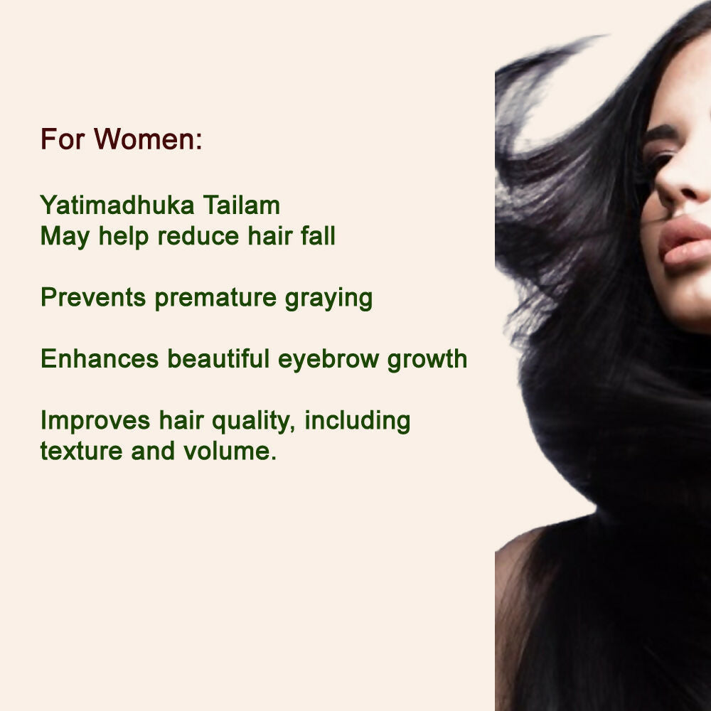 YastimadhukaTailam is a versatile Ayurvedic oil that nourishes your scalp, eyebrows, moustache, and beard with vital nutrients, promoting cell regeneration for stronger and healthier hair growth.