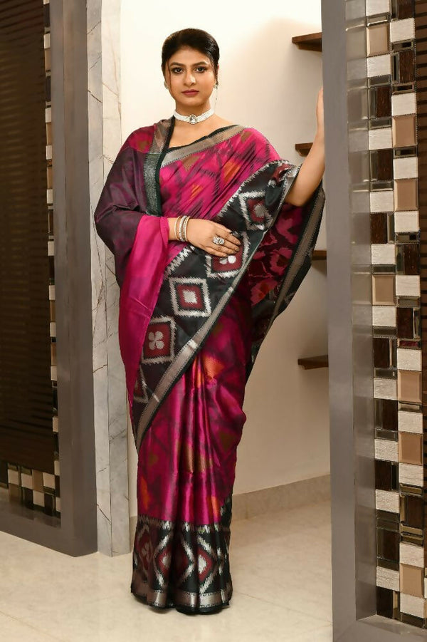 Joban Fashion Black & Pink Saree Kataan Ikkat