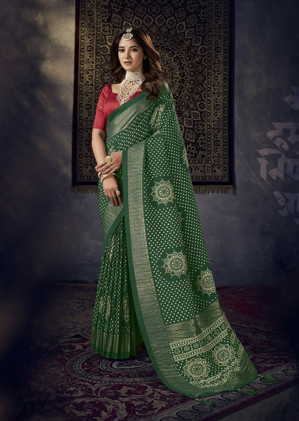 Joban Fashion Mustard Dola Silk Foil Print Zari Border Work Saree
