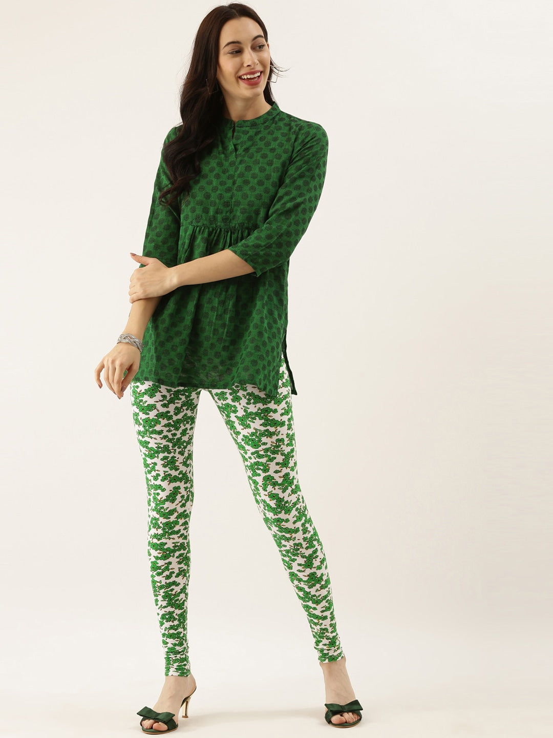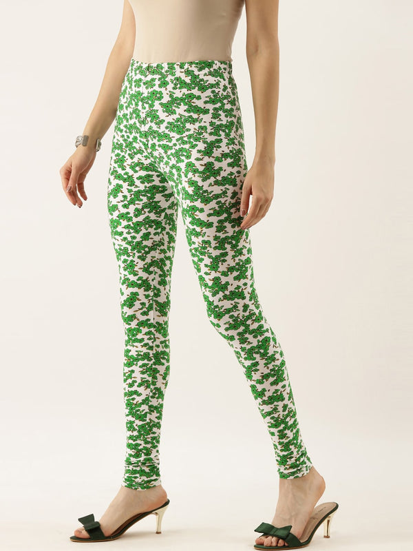 Souchii White & Green Printed Ankle-Length Leggings - Distacart