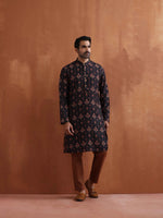 • Upgrade your festive wardrobe with this black viscose blend printed kurta.