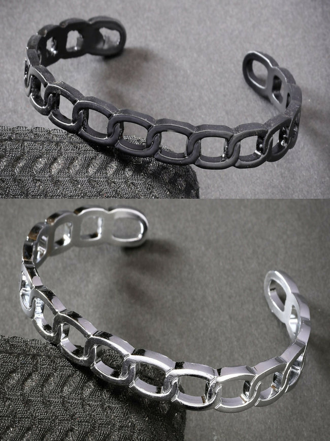 NVR Men's Set of 2 Silver & Black Rhodium-Plated Metal Cuff Bracelet