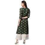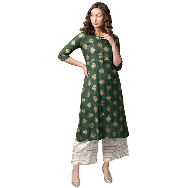 Anubhutee Women's Rayon Printed Green/Off-white Kurta with Palazzos
