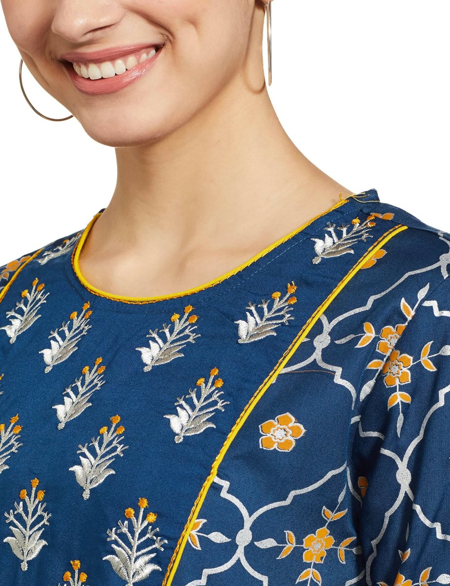 Anubhutee Women's Rayon Straight Printed Kurta with Palazzo Fit Type: StraightColor: Blue Material Type: Rayon Product Information: This set incl...