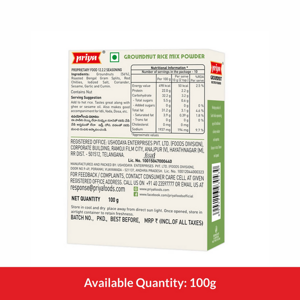 Priya Verusenaga PodiAbout the Product:The signature powder from southern Andhra Pradesh is an age-old accompaniment with breakfast and special foo...