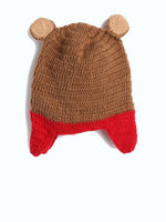 Chutput Kids Woollen Hand Knitted Bear Detail Cap - Brown