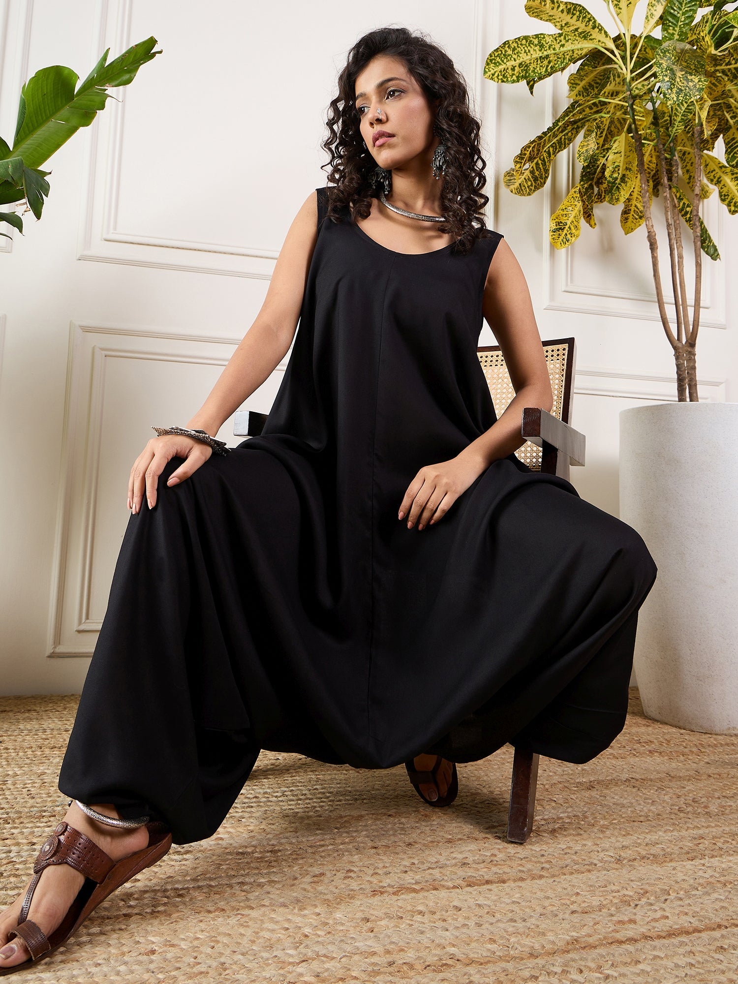 InWeave Black Round Sleeveless JumpsuitThe Set is crafted from best of Indian fabrics. Style it with Oxidised jewelery and juttis and you are good ...