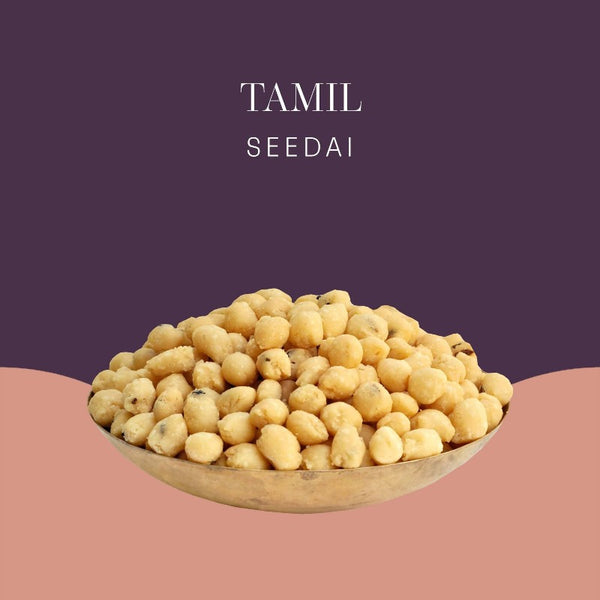 For years, murukku has been the first snack to pop up when I think of a Tamil snack. So this time when I was there, I was surprised to find the same mild, comforting taste in a crunchier form- as small beads known as Seedai! A traditional Tamil snack, the bite-sized Seedai is quite popular and is an essential part of naivedhyam during Janmashtami. It comes in two versions - I got you the savory one - also called ' Uppu Seedai'. Enjoyed across the southern region with different names and variations, the Seedai is a perfect addition of crunch to your chai/kaapi time!