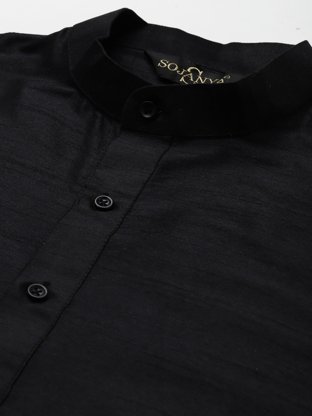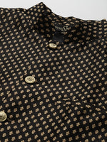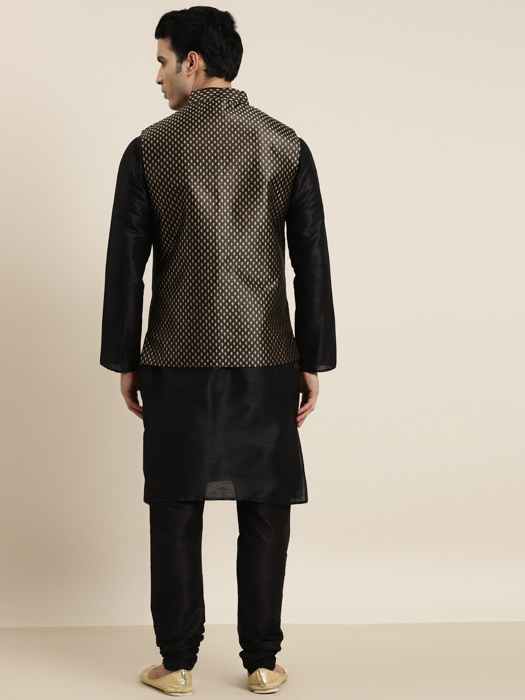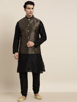 Black solid Kurta with Churidar and Nehru jacket