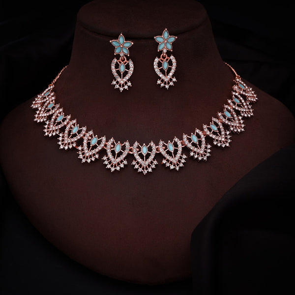 Tehzeeb Creations Sky Blue Colour Sparkle Stone Studded Necklace With Earrings