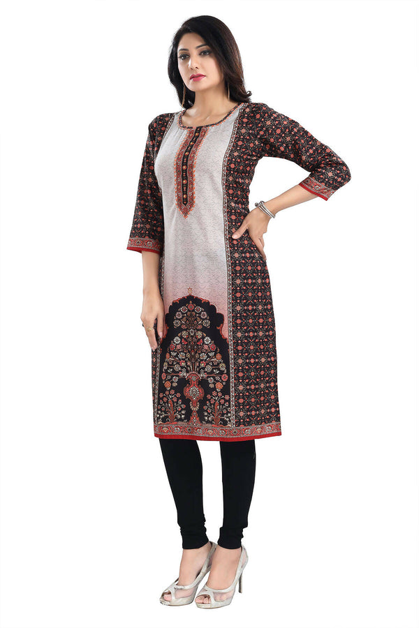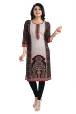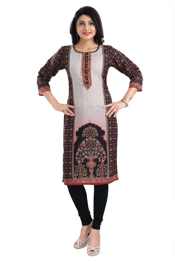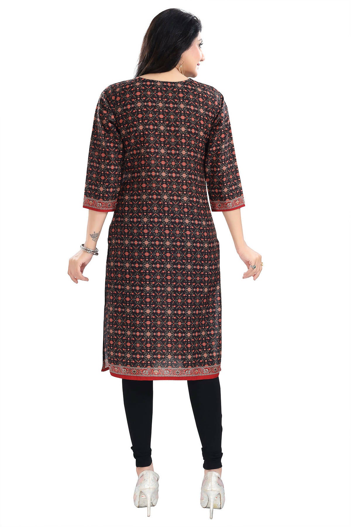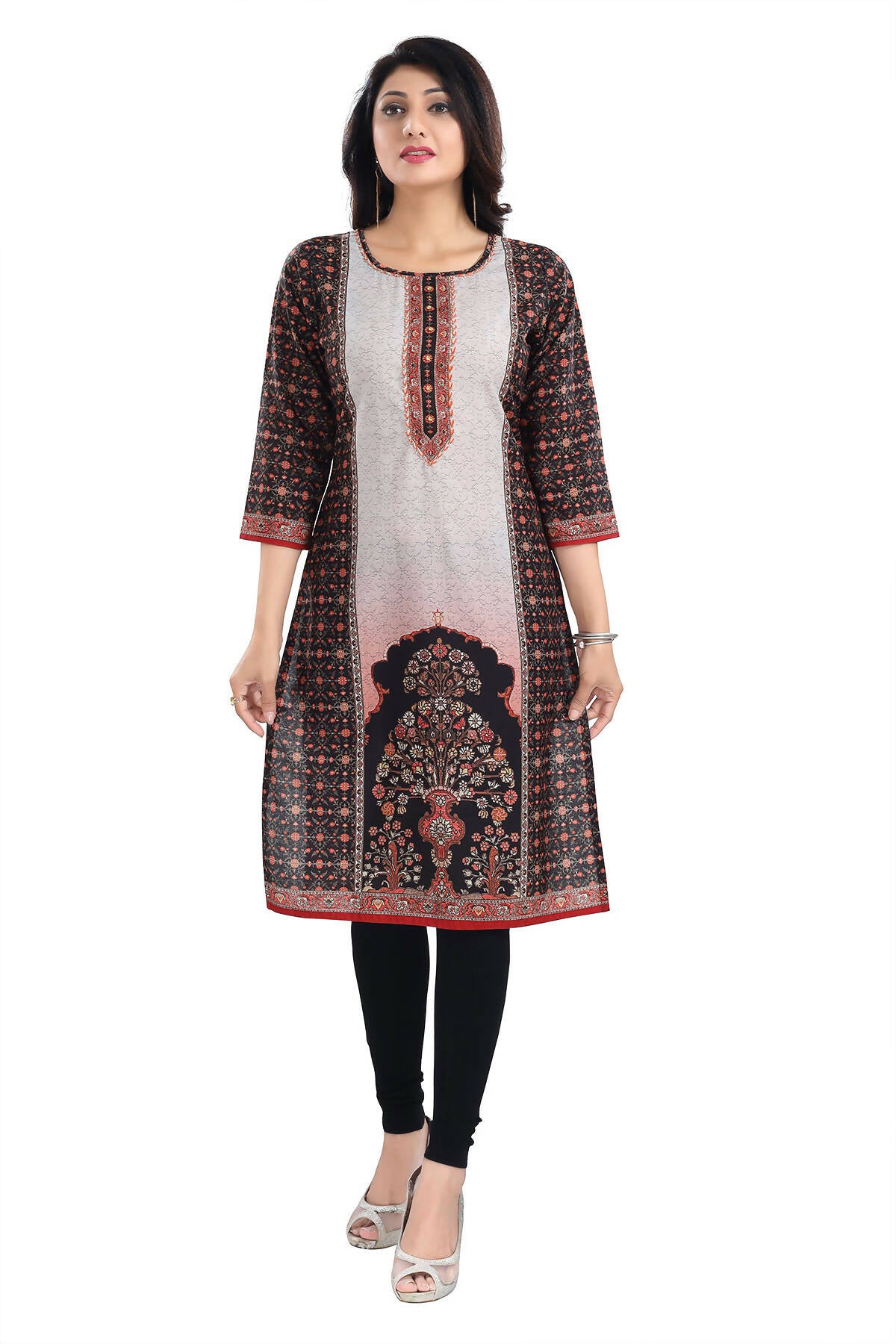 Snehal Creations Black Beauty Designer Digital Print Cotton Slub Fabric Long Kurti Tunic
