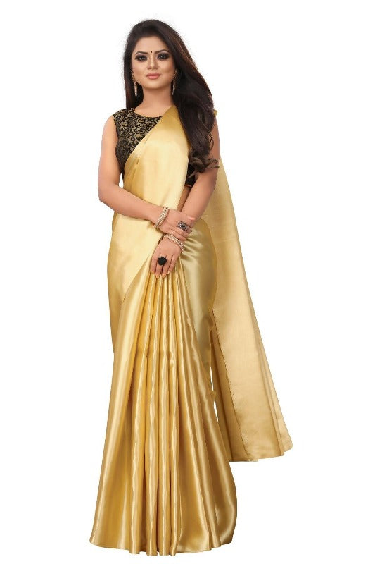 Vamika Golden Satin Designer Saree (PAVITRA GOLD) And it's Specifications: Work: Designer Base Fabric: Satin Fabric Saree: Satin Fabric Blouse: Jaq...