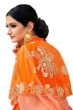 Vamika Orange Designer Saree With Double Blouse 1. Plain Silk Blouse 2. Poncho Blouse (With Embroidery And Stone Work)