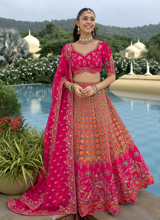 Prazu Fashion Orange Georgette Thread Sequence Wedding Lehenga Choli