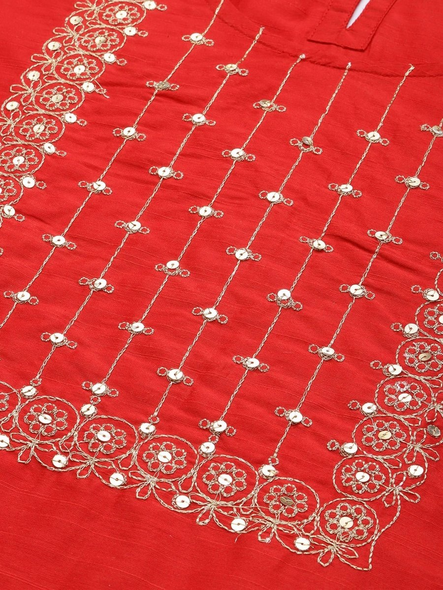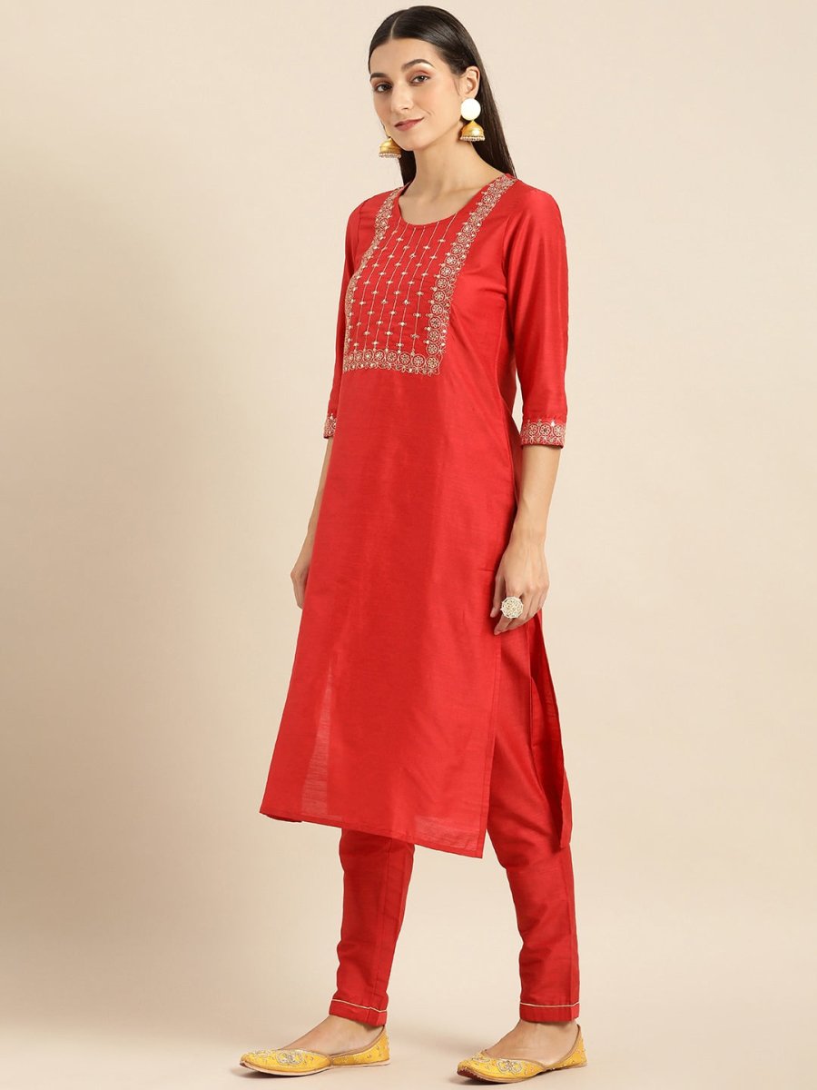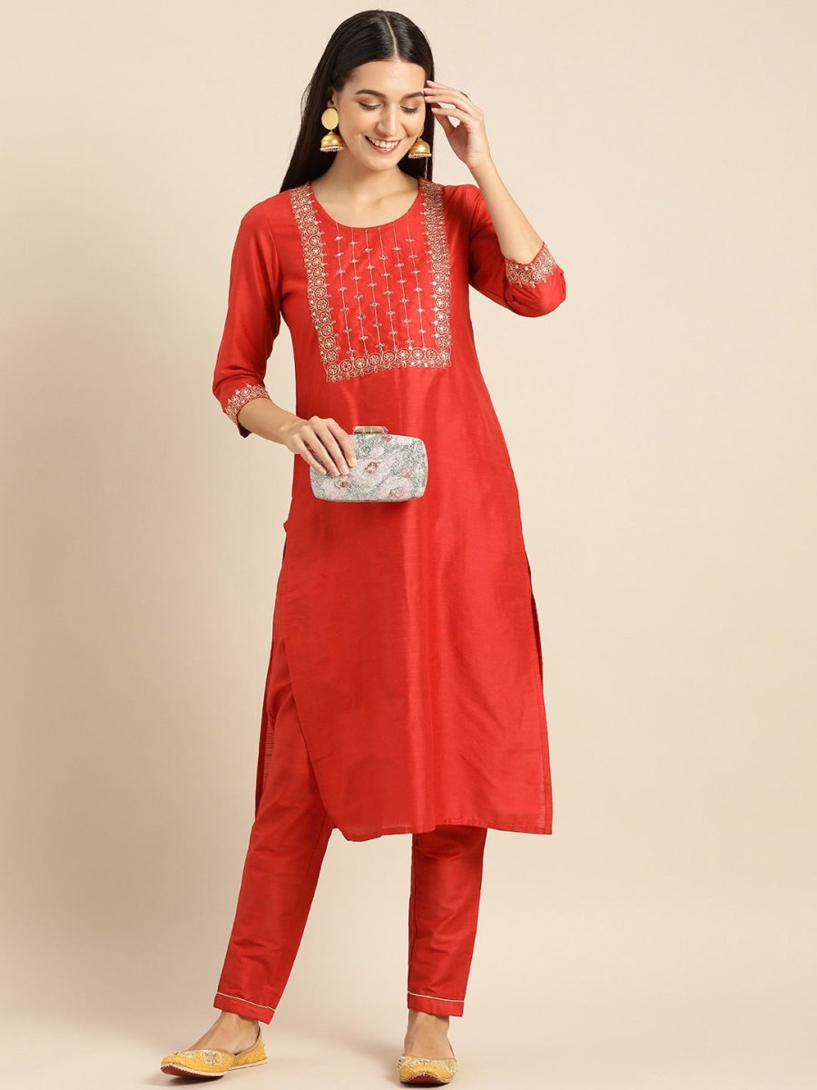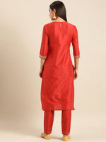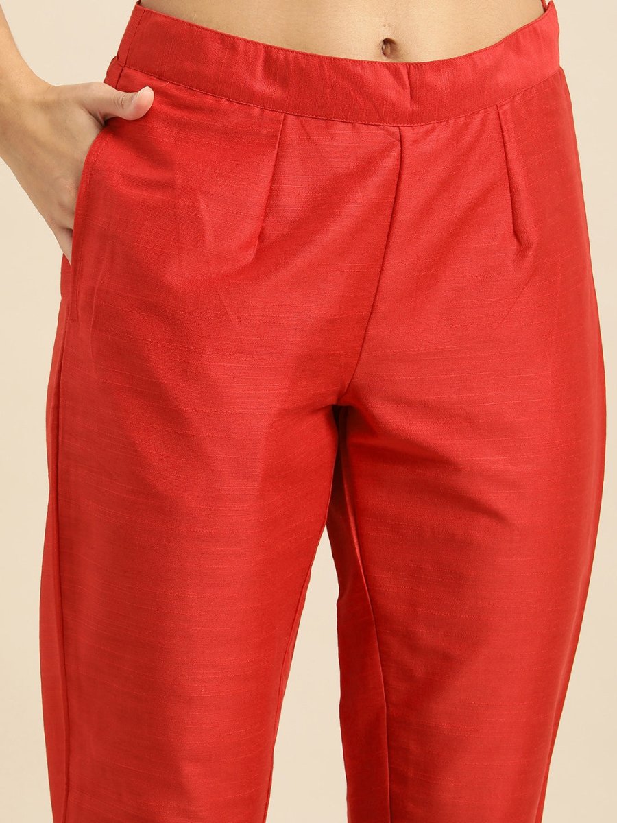 Red woven design Kurta with Trousers