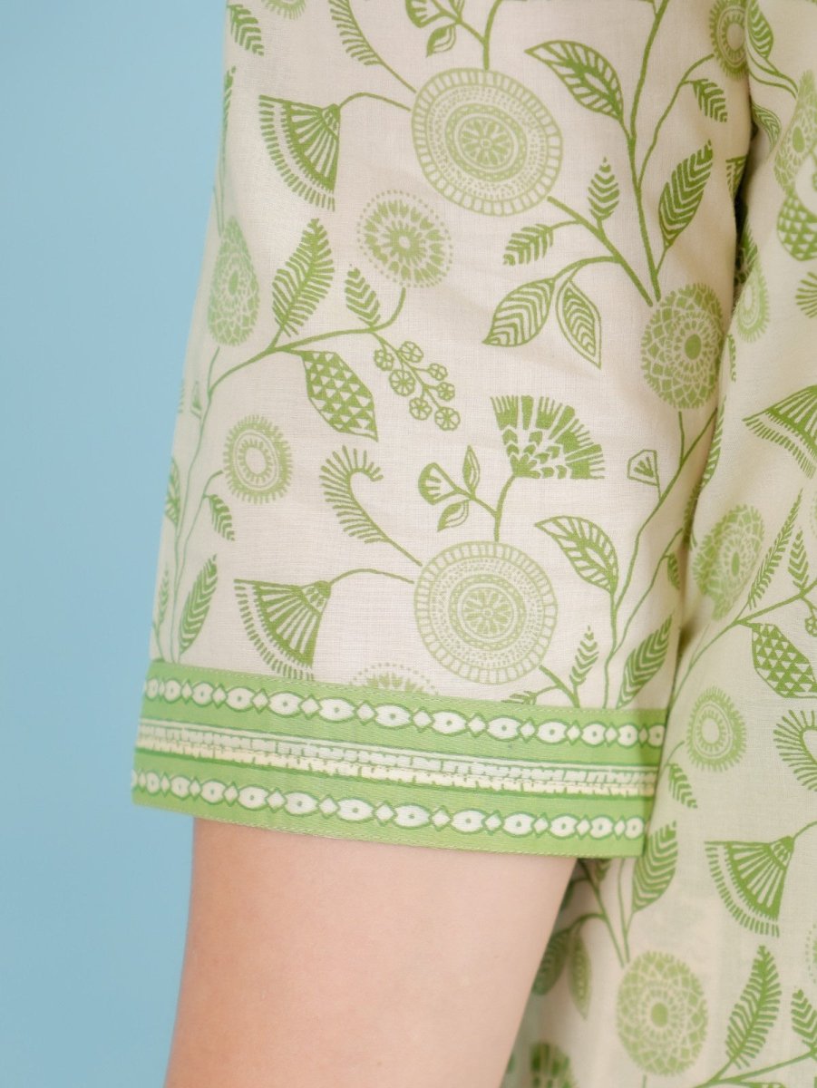 Aramya Straight Soft Cotton Floral Print Women's Kurta - Green - M