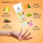 • Unveil your skin's natural glow with Vitamin-C Face Cleanser, enriched with the potent trio of Indian gooseberry, Lemon, and Orange. This dynamic blend clears and brightens your complexion and also fights free radicals, promoting collagen production for youthful elasticity. The inclusion of Alpha Hydroxy Acid (AHA) from the Hibiscus gently sweeps away dead skin cells to reveal a smoother texture. Moreover, the soothing embrace of rose extracts ensures your skin stays soft and hydrated after every wash, keeping the natural barrier intact. Experience the transformative touch of this cleanser that combats signs of aging, evens out skin tone, and revives your skin's inherent radiance. A symphony of nature’s best, crafted for all skin types, awaits you.