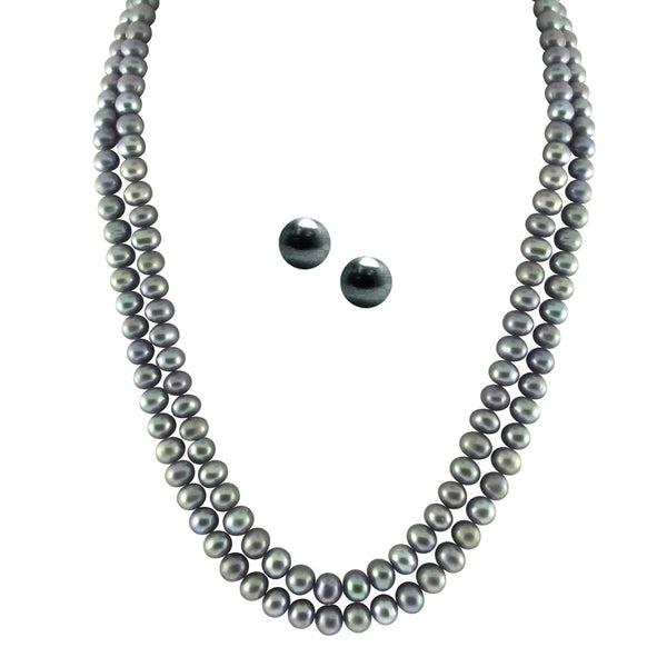 J Pearls 2 String Grey Pearl Set - Real Pearl Jewelry - Distacart