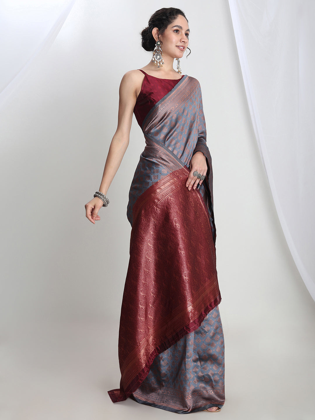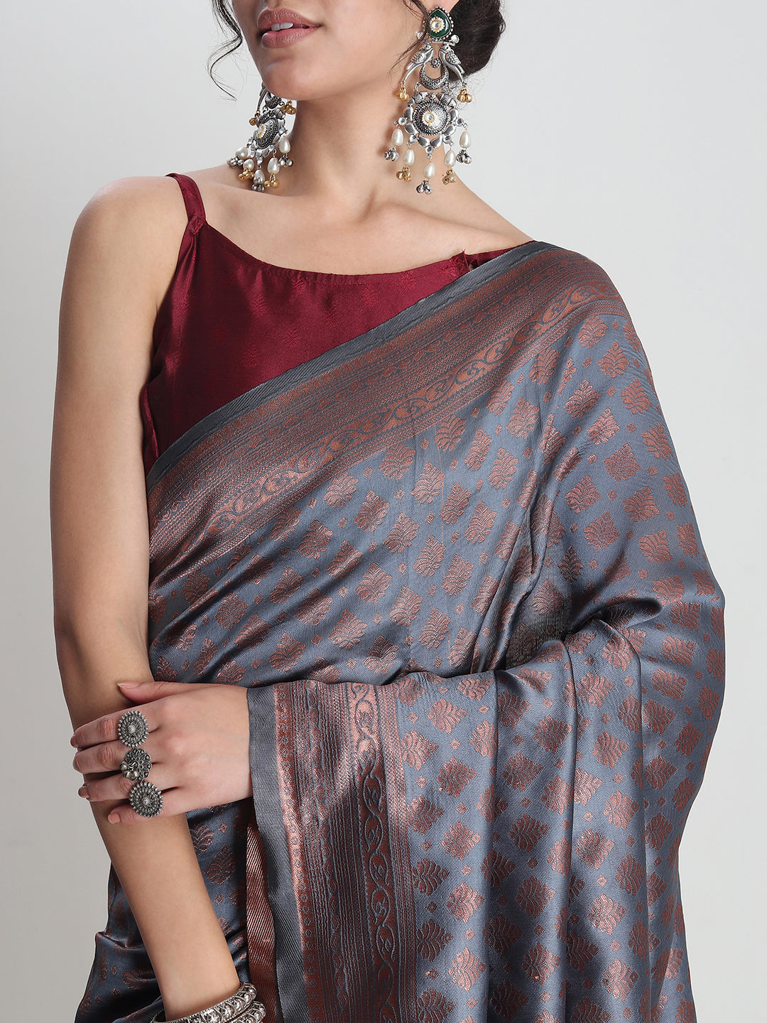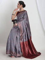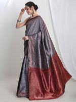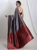 Janasya Grey Silk Blend Ethnic Motifs Jacquard Saree