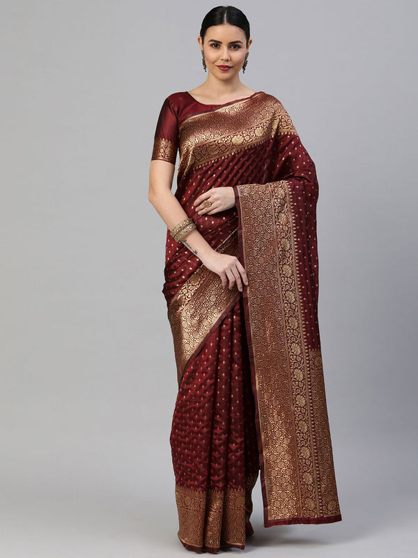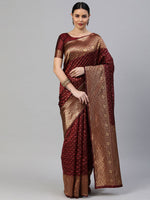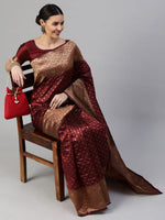 Kalini Ethinic Woven Design Zari Banarasi Saree Product Details Design Details Maroon and gold-toned banarasi saree Ethinic woven design saree...