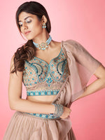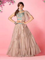Myra Rose Taupe Art Silk Designer LehengaRose Taupe Art Silk Designer Lehenga features a art silk blouse with chiffon fabric lehenga with chiffon d...