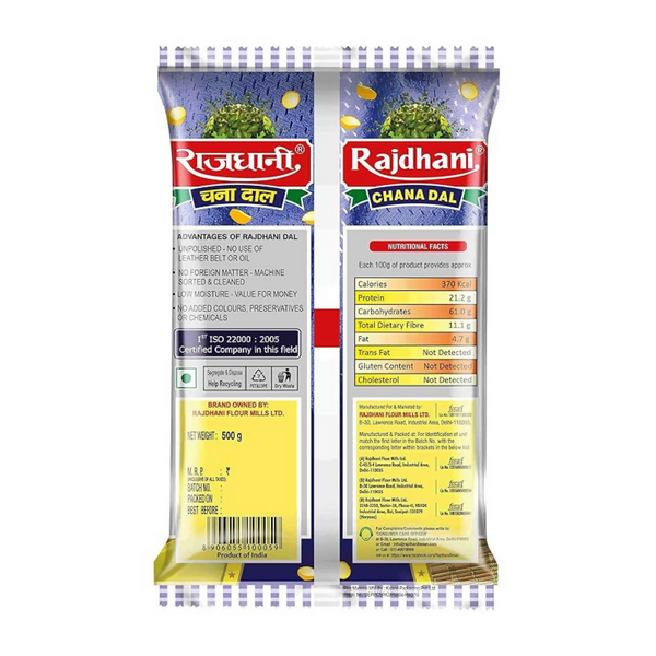 • UNPOLISHED DALS: Rajdhani dals do not undergo any artificial polishing with water, oil or leather, thereby retaining their goodness and wholesome character. Hygienically packed chana dal which is free from impurities such as weevils and stones