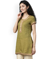 Souchii Olive Green Woven Design Kurta - S