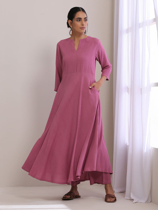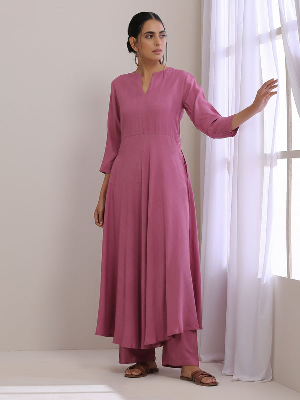 trueBrowns Onion Pink Dobby Anarkali Pant Set