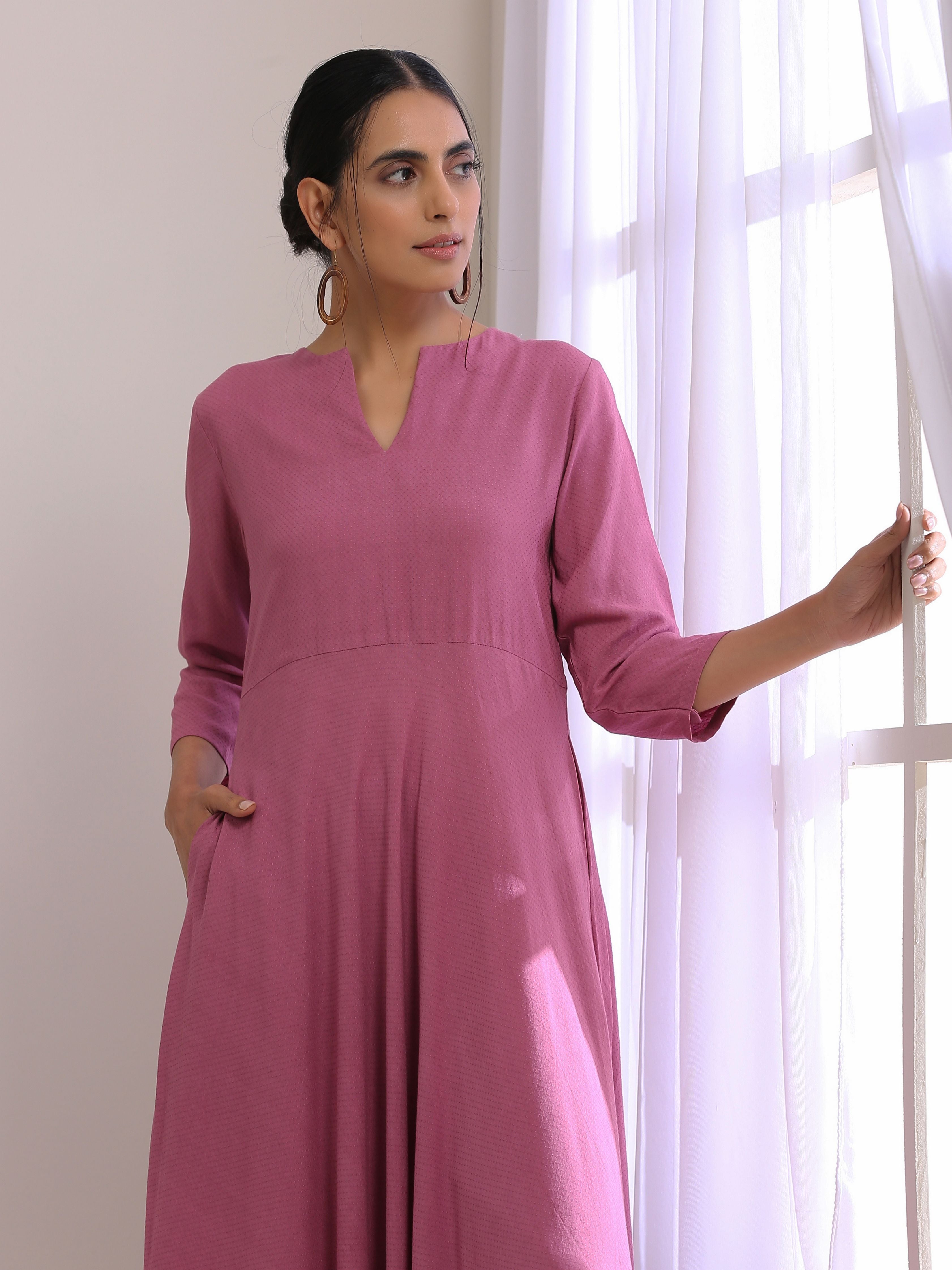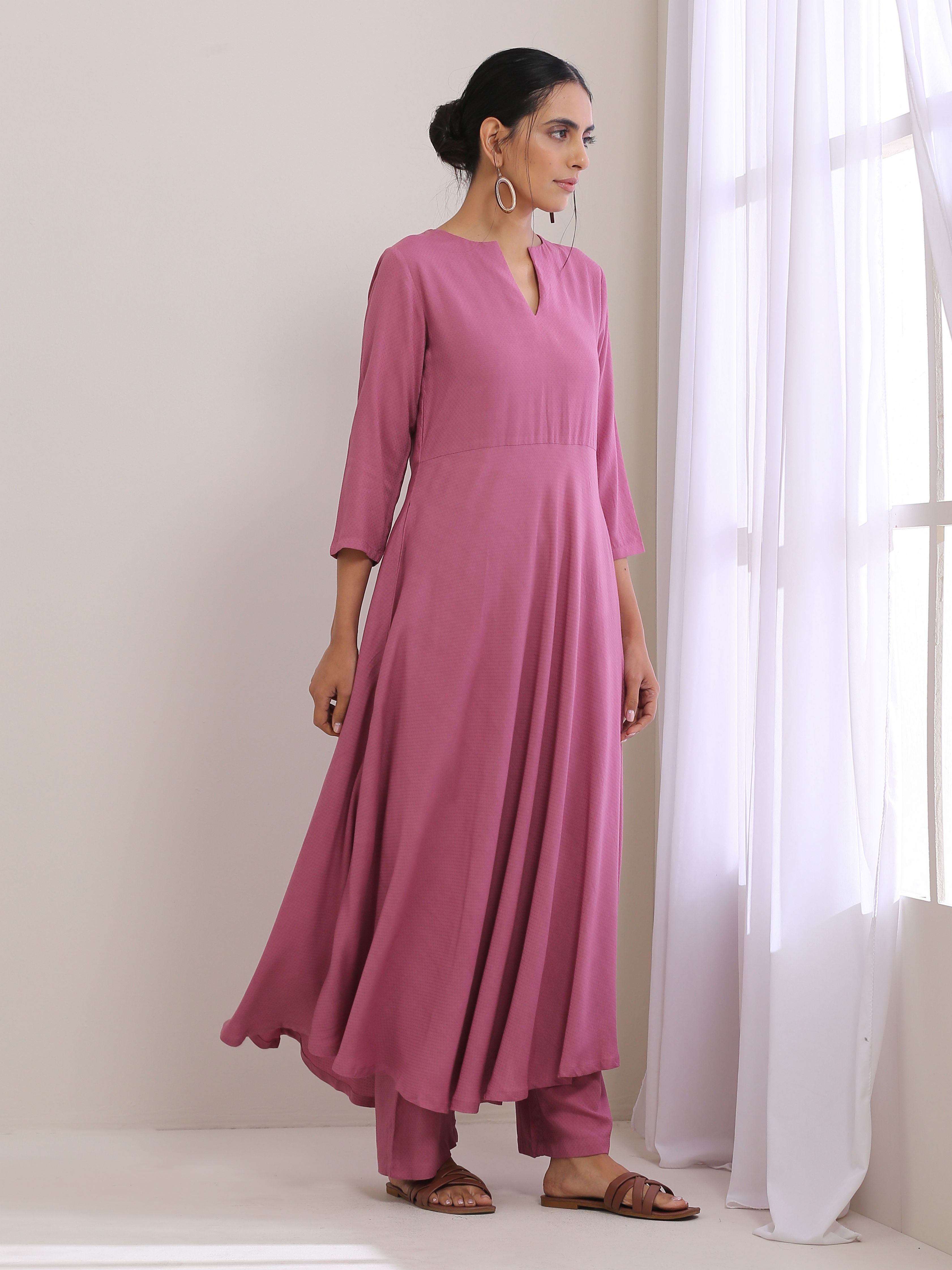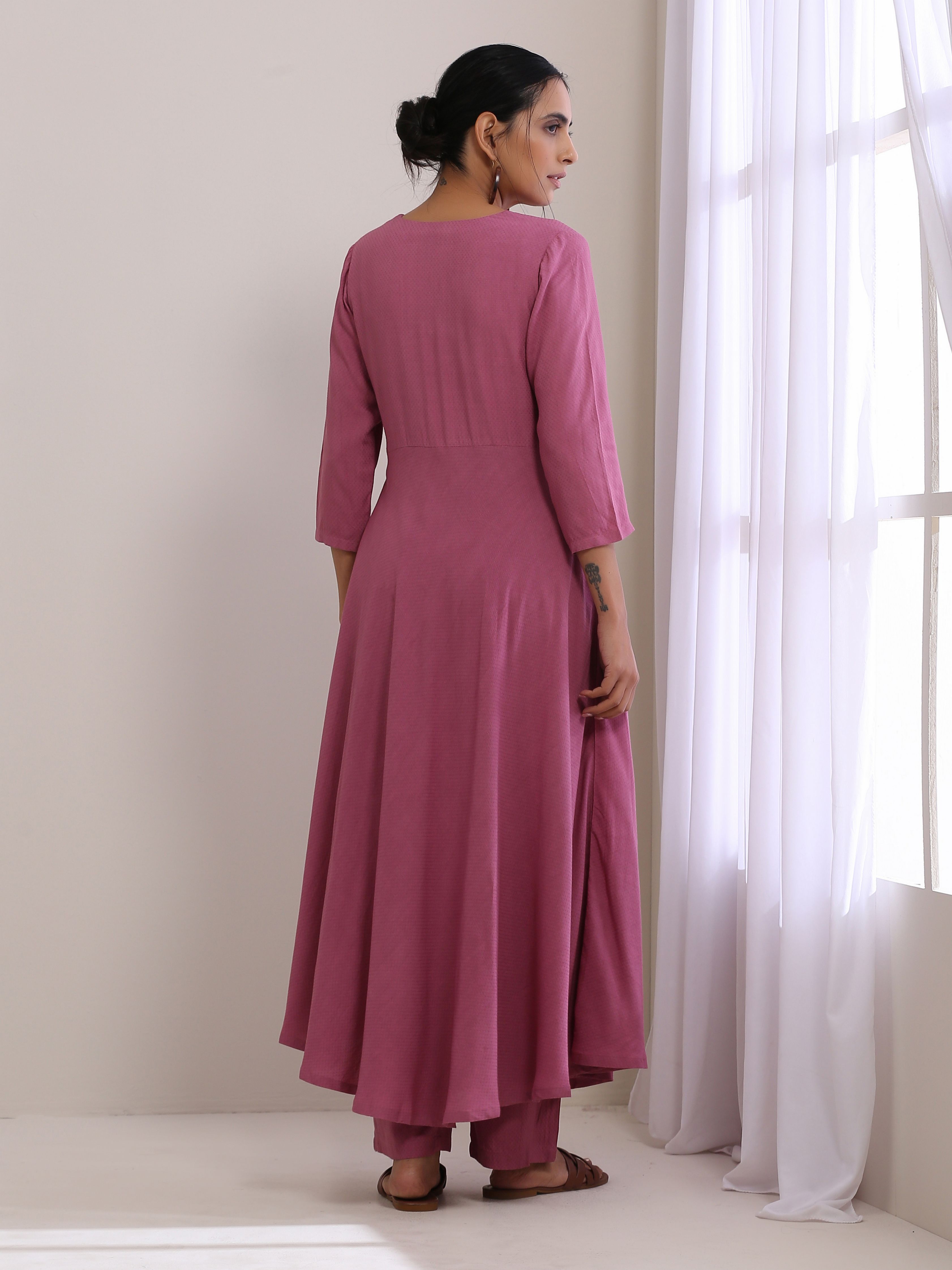 trueBrowns Onion Pink Dobby Anarkali Pant SetDescription Dobby anarkali kurta with keyhole detail on front neck and pockets on both the side. It ha...