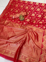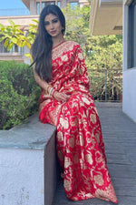 Vamika Weaving Banarasi Jacquard Red Kanjivaram Saree