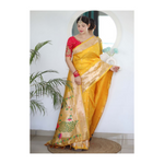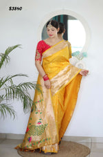 Yellow Woven Jacquard Designer Embroidery Work Party Wear Saree - Parampara