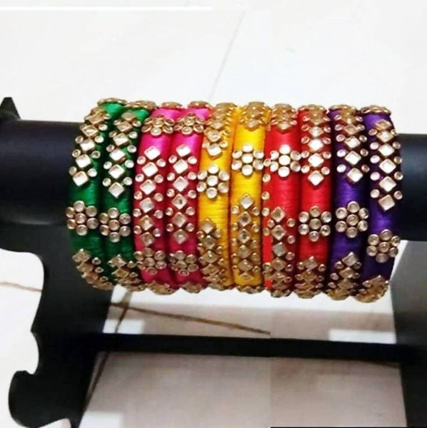 Multi Color Stoned Designer Silk Threaded Bangles Set of 5