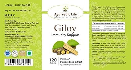 Ayurvedic Life Giloy Immunity Support TabletsDirections For Use:Dosage should be prescribed by the expert.Legal Disclaimer: Statements regarding di...