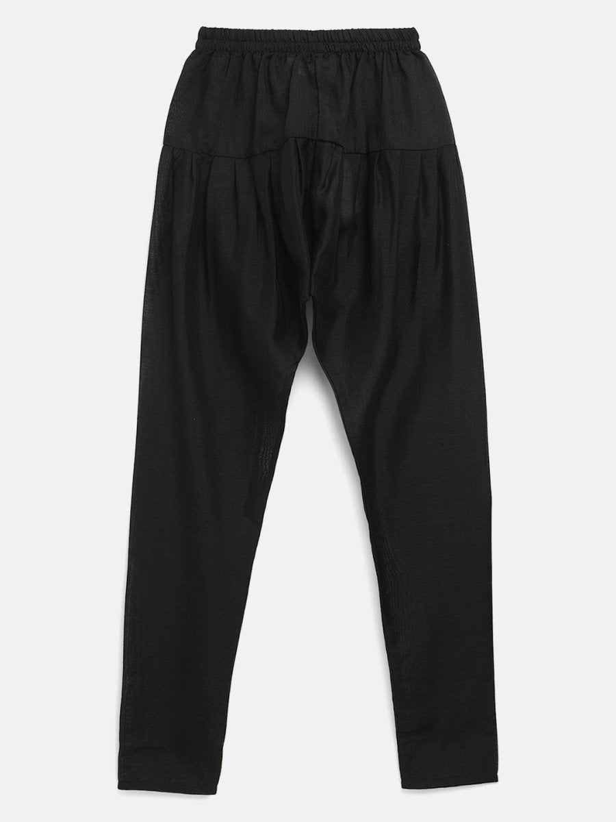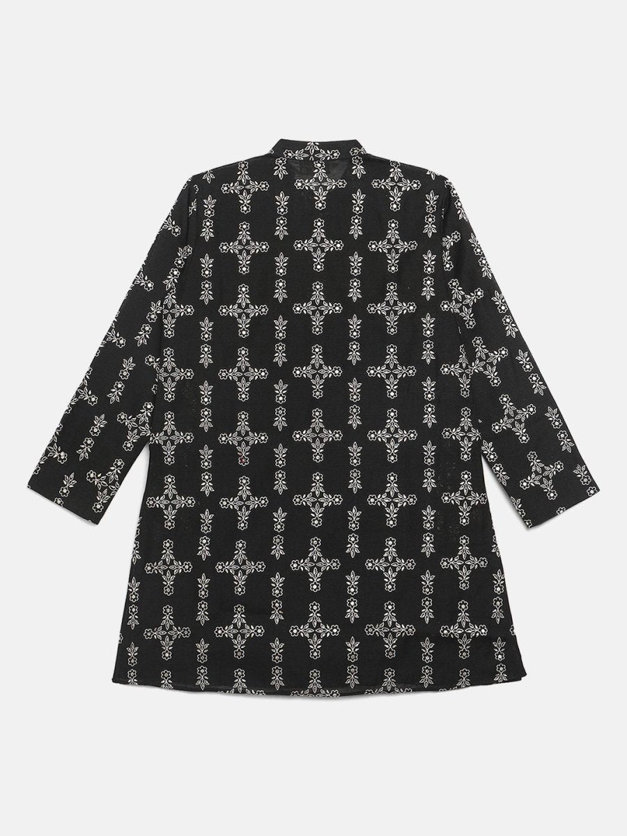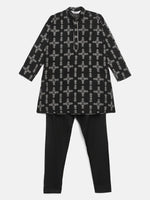 Ahalyaa Boys Black Chanderi Gold Printed Kids Kurta Churidar Set