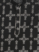 Ahalyaa Boys Black Chanderi Gold Printed Kids Kurta Churidar Set - 2-3Y