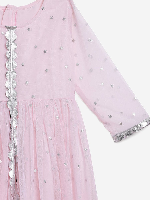 Ahalyaa Pink Crepe Front Slit Girl's Kurta This Ahalyaa kurti is an elegant pastel long anarkali kurta for girls. Perfect ethnic pick for your litt...