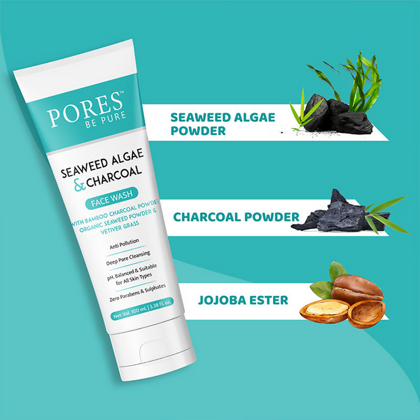 Pores Be Pure Charcoal Face Wash With Seaweed AlgaeAbout The Product:Pores Be Pure Seaweed & Charcoal Face Wash is made from mineral-rich seawe...