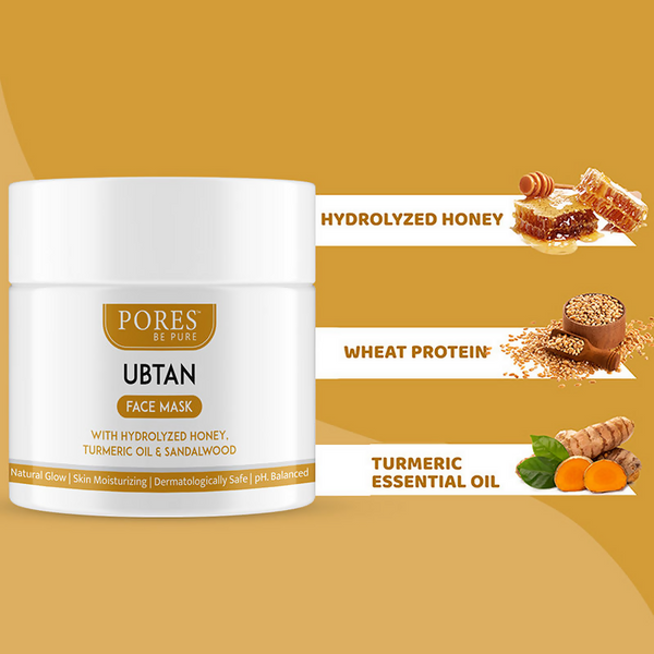 Pores Be Pure Ubtan Face Mask for Brightening Skin with sandalwood, turmeric, and hydrolyzed honey is a 100% natural cleanser that has been used for clear, beautiful skin. It not only cures numerous skin-related problems but also makes your skin brighter and healthier. It is infused with the skin-illuminating properties of turmeric, sandalwood, and glycerine, which work as natural skin-brightening agents. Formulated with an ancient ubtan recipe, this mask helps remove skin tan and brightens up the skin, leaving it glowing. It is intended to give your face a clean and oil-free appearance.