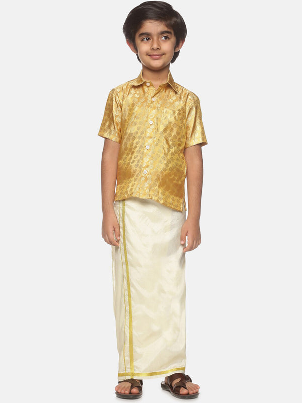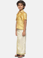 Sethukrishna Boys Gold-Toned Self Design Shirt with Dhoti