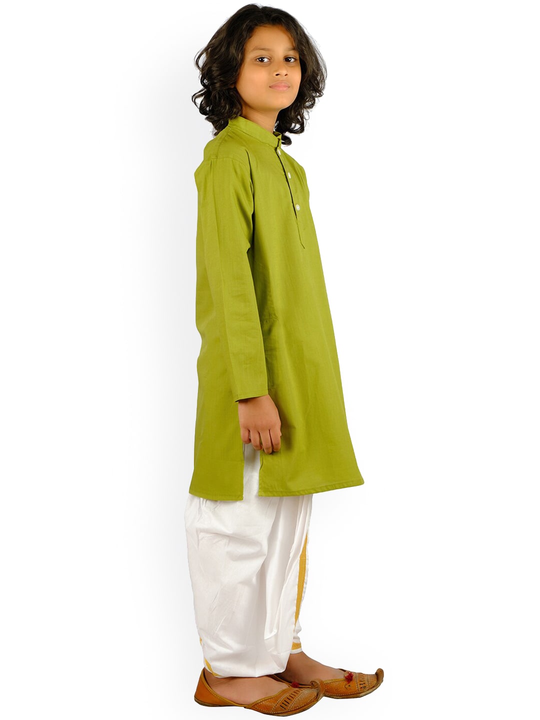 Sethukrishna Boys Green Angrakha Pure Cotton Kurta with Churidar