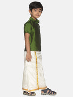 Sethukrishna Boys Green Shirt & Cream-Coloured & Zari Border Veshti Set - 2-3Y