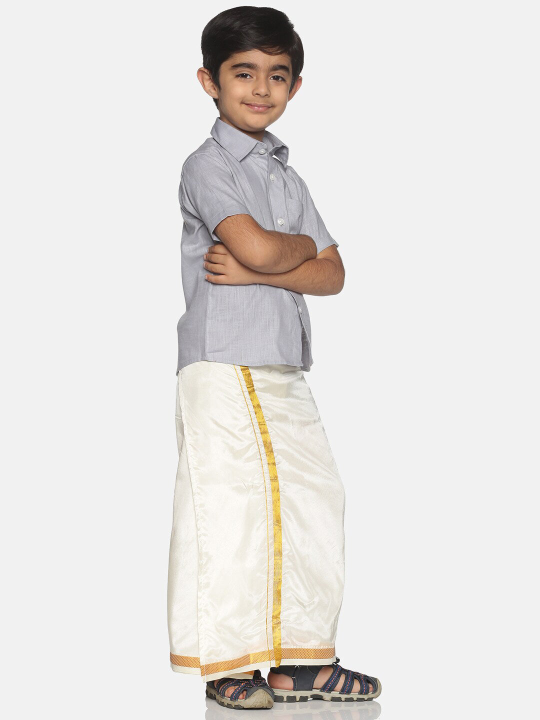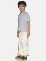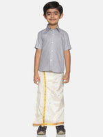 Sethukrishna Boys Grey & White Solid Shirt with Veshti Set