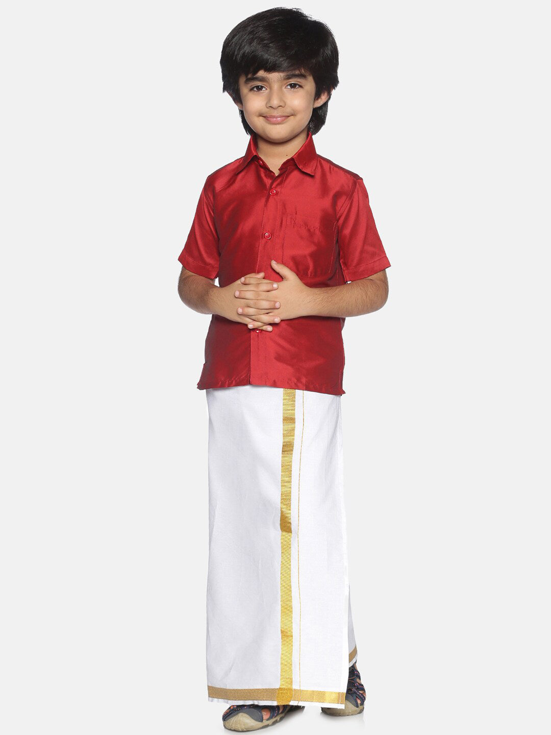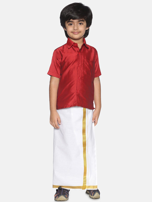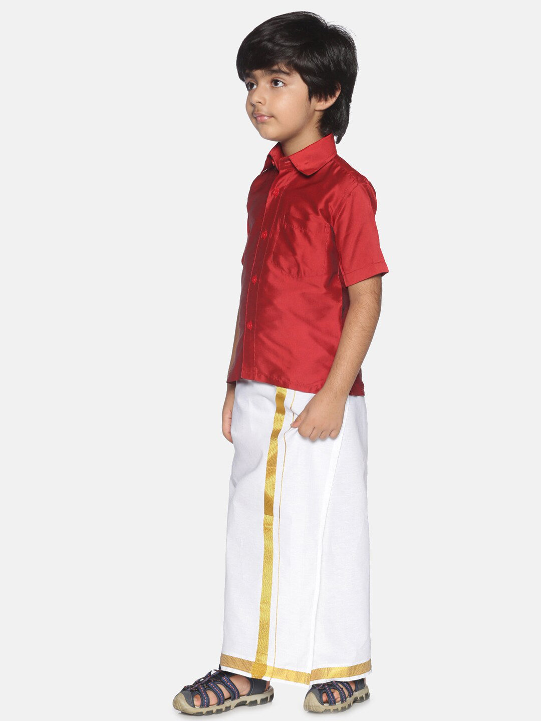Sethukrishna Boys Red & White Shirt and Veshti Set