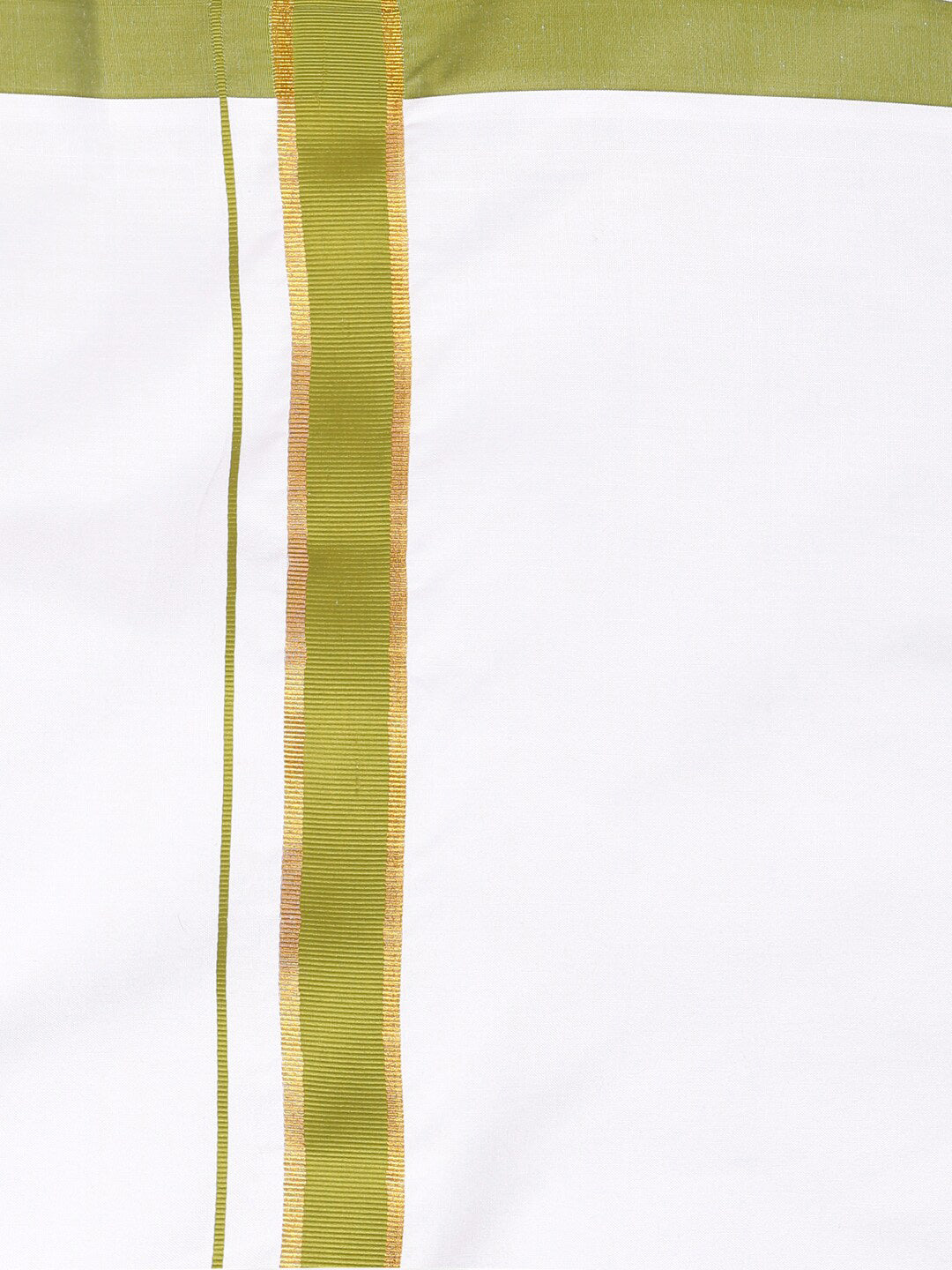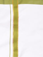 Sethukrishna Boys White & Green Cotton Shirt With Readymade Dhoti